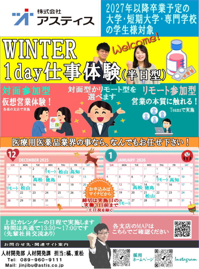 1day仕事体験のご案内(2025年12月~2026年1月実施)
